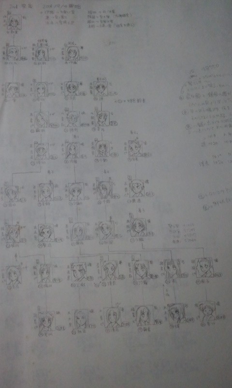 PSの2ndデータ皇一族の手描き家系図。十年以上前のですが普通に残ってました。コピー用紙に鉛筆書きだからきったないけど……ものっそ恥ずかしいので雰囲気だけ読んで!